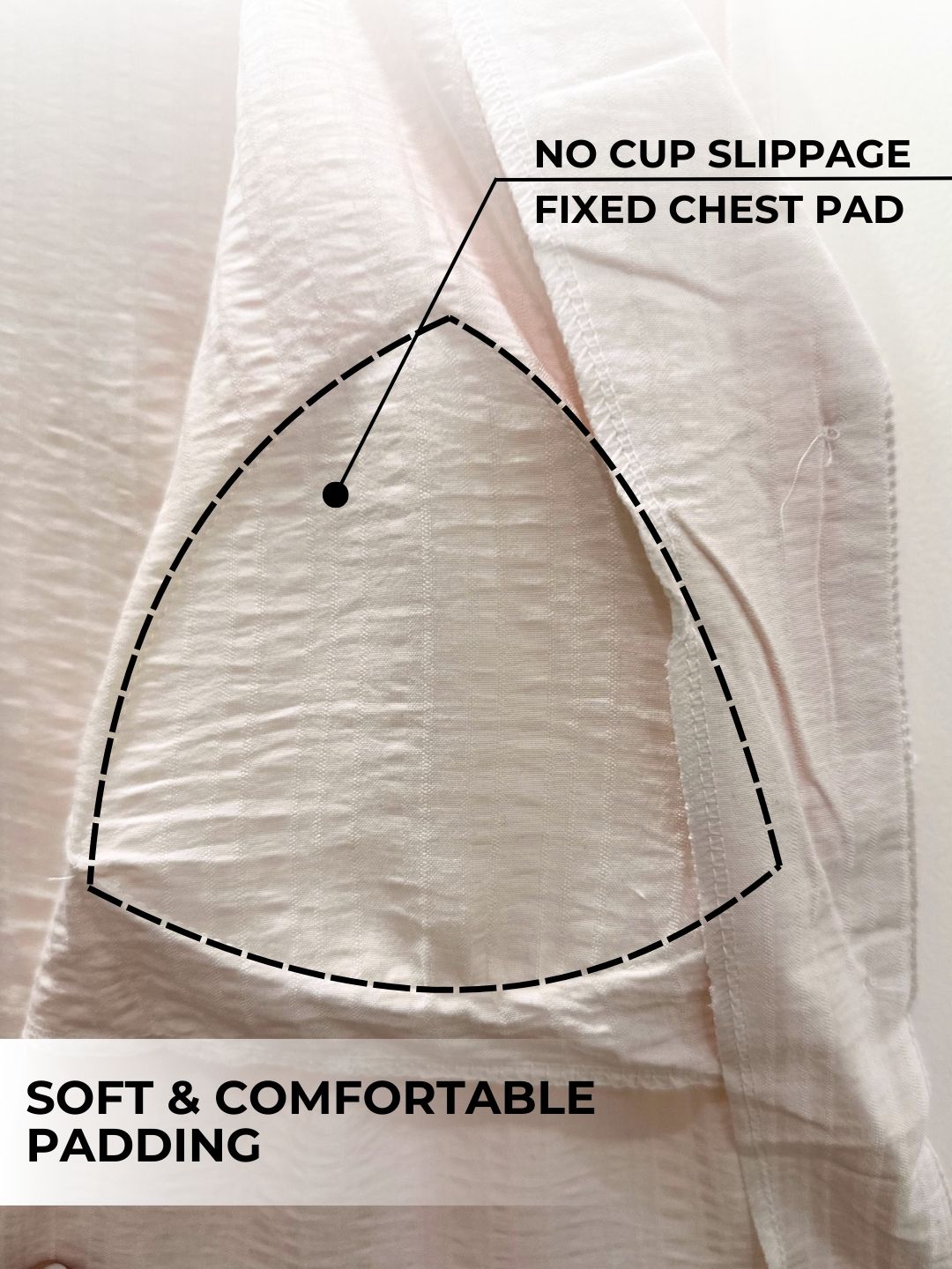 The fixed pads stay securely in place, ensuring all-night ease with no slipping or shifting. Lightweight and breathable, this nightsuit is perfect for winding down after a long day or starting your mornings in relaxed style. With the perfect blend of support, convenience, and chic design, it’s your go-to choice for comfortable yet stylish nightwear.